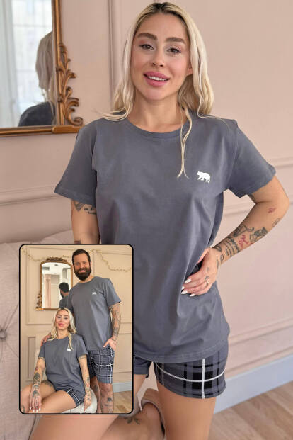 Füme Bear Şortlu Sevgili Aile Pijaması - Kadın Takımı
