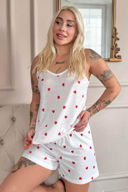 ✔ Kalp desenli şort ve ip askılı üst kombinasyonu
