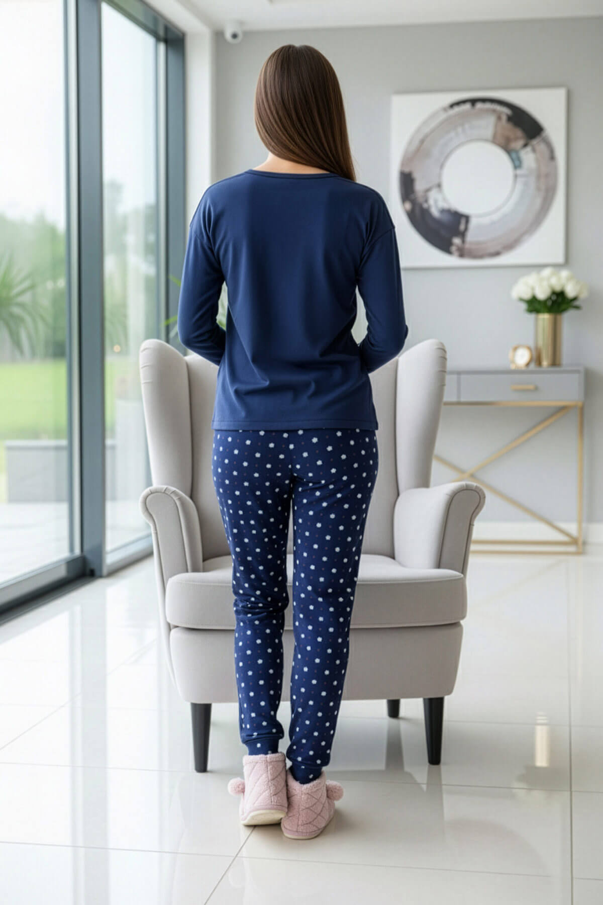 Lacivert Winter Dream Desenli Uzun Kollu Bambu Örme Kadın Pijama Takımı
