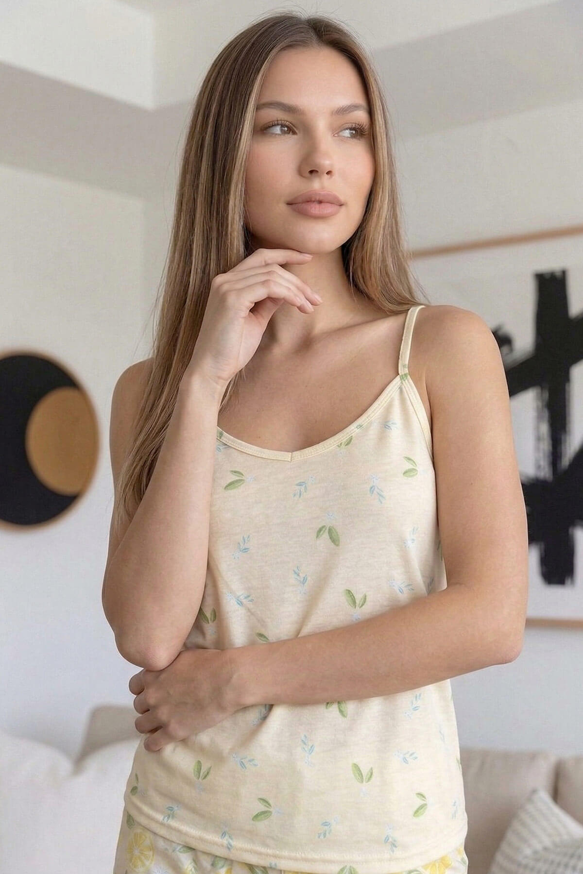 Lemon Desenli İp Askılı Şortlu Kadın Pijama Takımı - 4