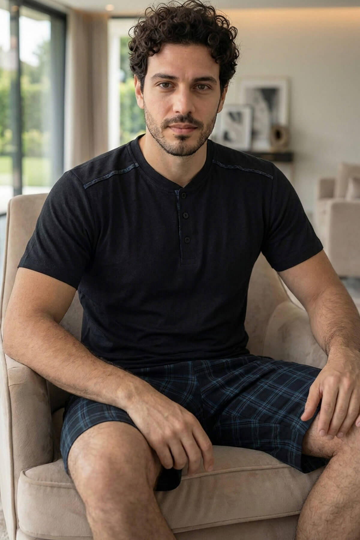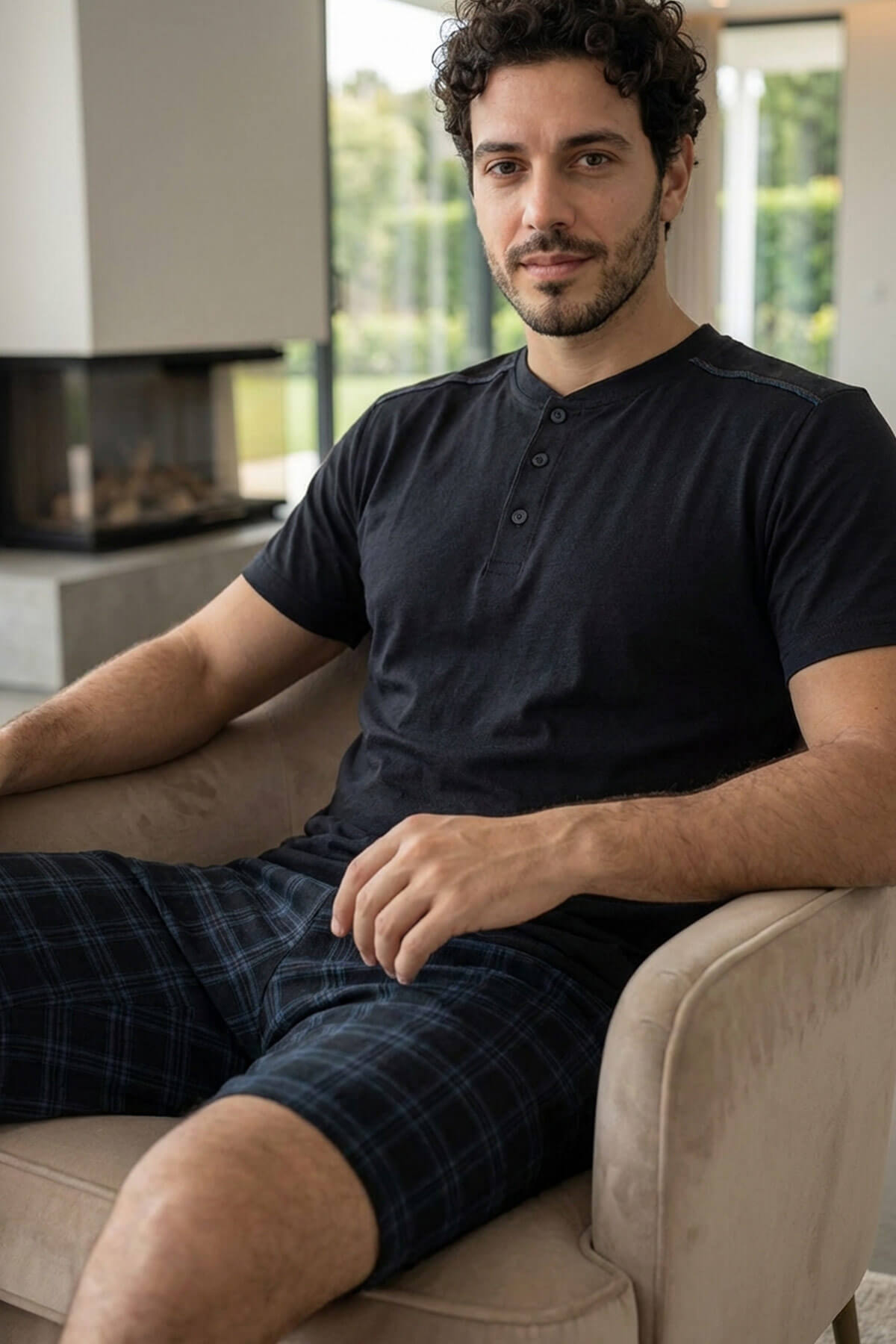 Gelince Haber VerErkekler için konfor ve stilin bir araya geldiği Premium Mevsimlik Erkek Pijama Takımı, lüks dokusu ve kaliteli kumaşıyla üst segment ev giyimi deneyimi sunar. %100 pamuk kumaşı, nefes alabilir yapısıyla cildinize yumuşak bir dokunuş sağlar. Patlı kısa kollu üst pijama ve Şortlu ekose alt pijama tasarımıyla hem klasik hem de modern bir görünüm sunan bu set, premium pijama arayan erkekler için mükemmel bir seçimdir.