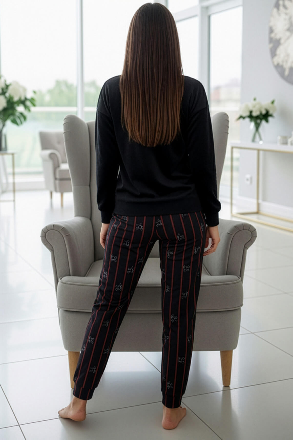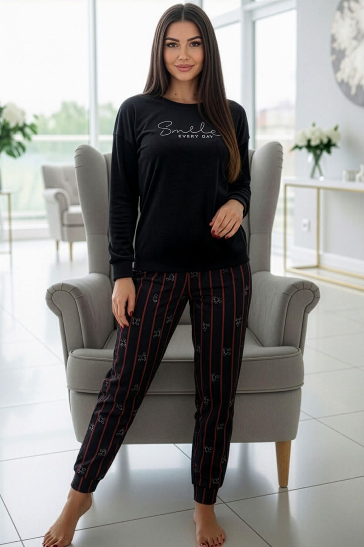 Siyah Smile Desenli Exclusive Kadife Kadın Pijama Takımı