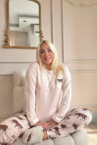 Neden Satın Almalısınız? Soğuk kış günlerinde hem rahat hem de stil sahibi olmak isteyenler için tasarlanan bu pijama takımı, termal yapısıyla sizi sıcak tutar. Sevimli kaplan desenleri ile hem şık bir ev giyimi sağlar hem de yüksek konfor sunar. Pijamaevi’nin bu özel tasarımı, tarzınıza fark katarken soğuk havalarda koruma sağlar.